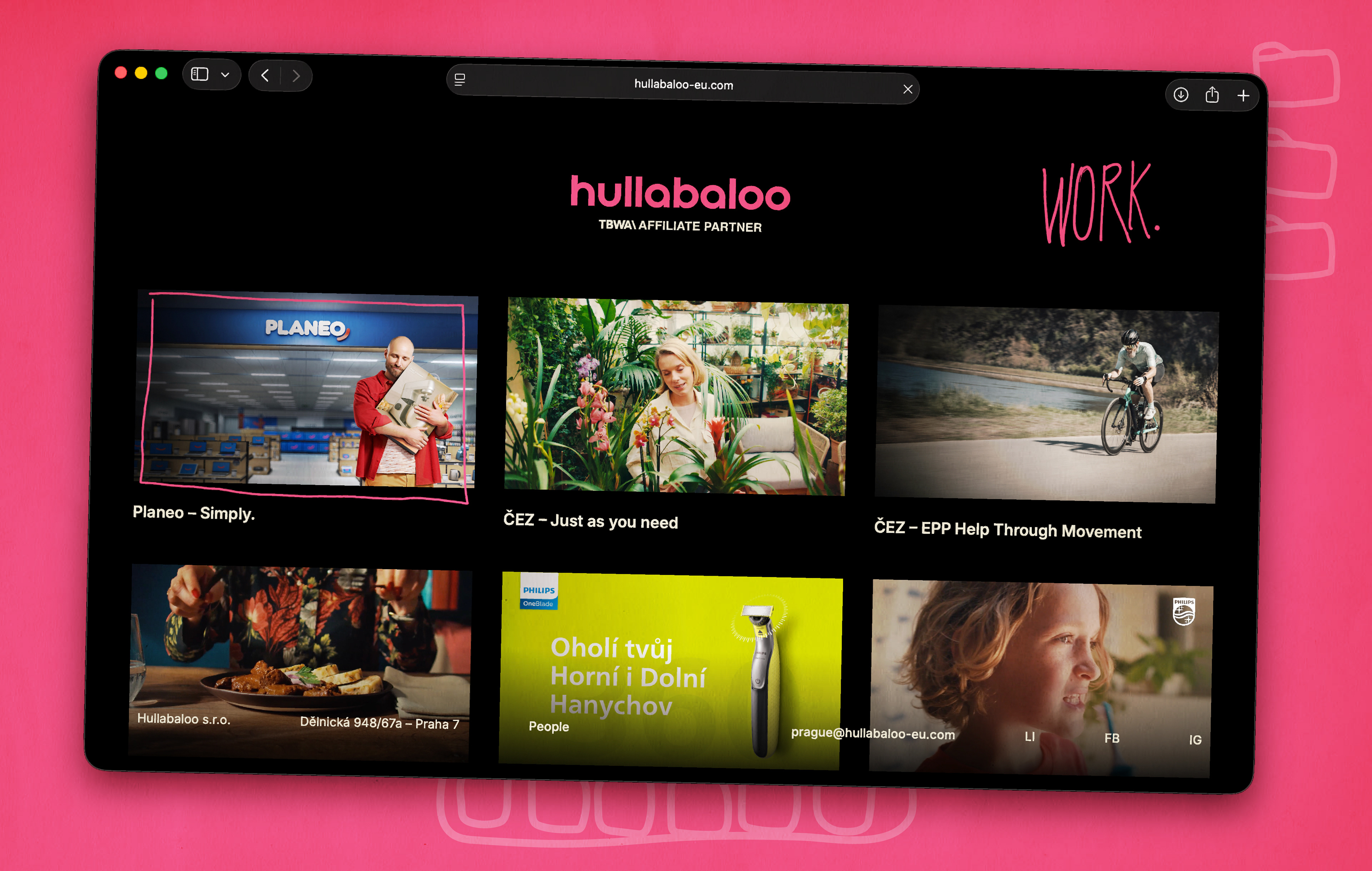 In the work section, each project features a short animation. Hand drawn elements appear throughout the site to emphasize that the work is made by real people.